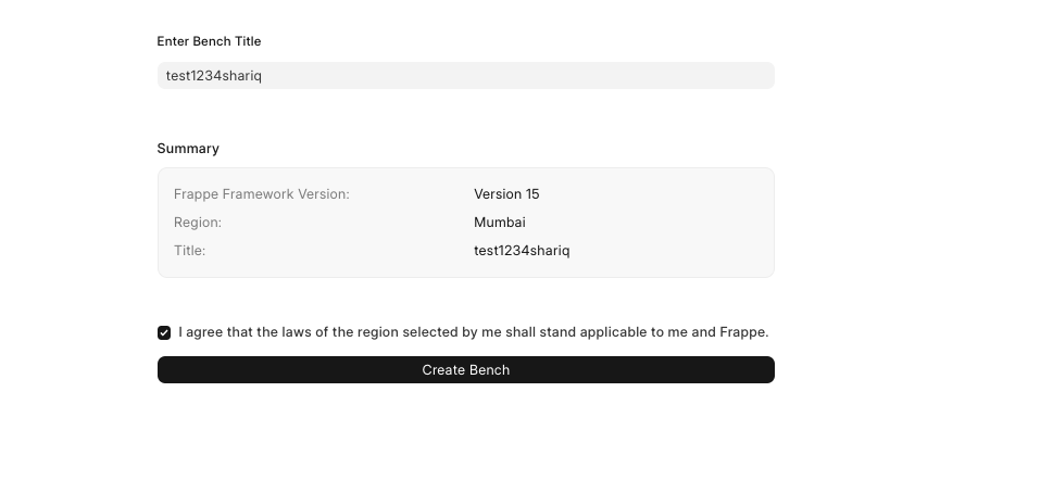 Select the Version of the bench group you want, select the Region for the bench group and name the bench group as per your requirement and click on create bench group