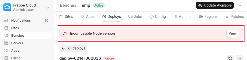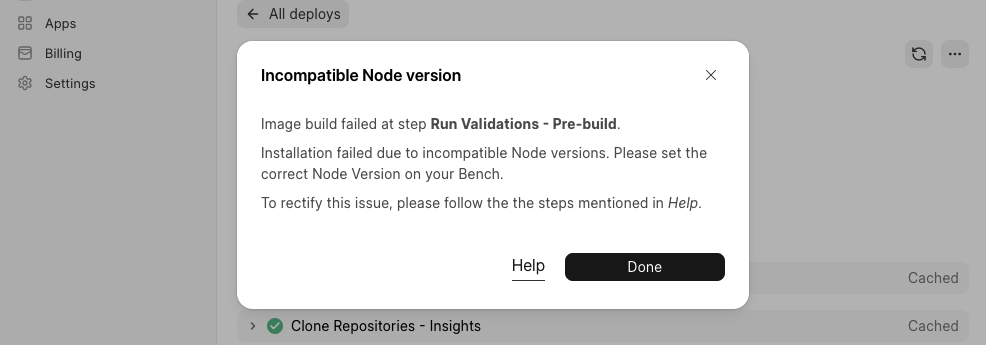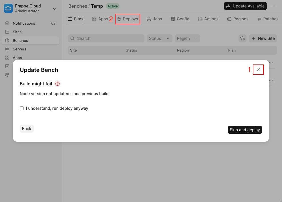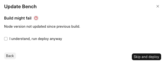 If you have come across a similar Dialog such as the one below while updating your bench group, it means that the underlying reason for why your previous build failed has not been addressed.