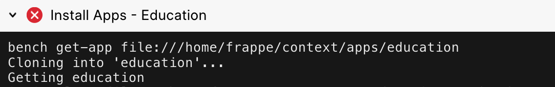 If that does happen you can fix the code in the repository you just cloned (for example, at /some/path/app) and try running bench get-app in the same bench or a new one.