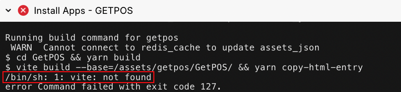 If you build has been failing at the Install Apps stage with vite: not found in the build output, such as this: