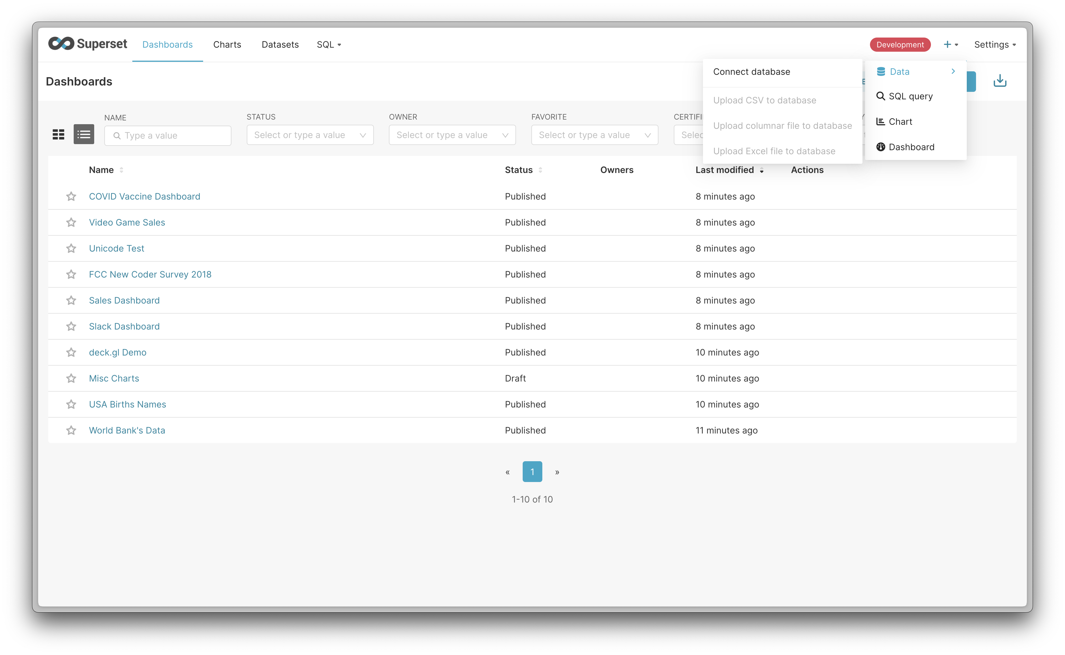 6. Now, you can refer to the official documentation to create a dashboard in Superset.