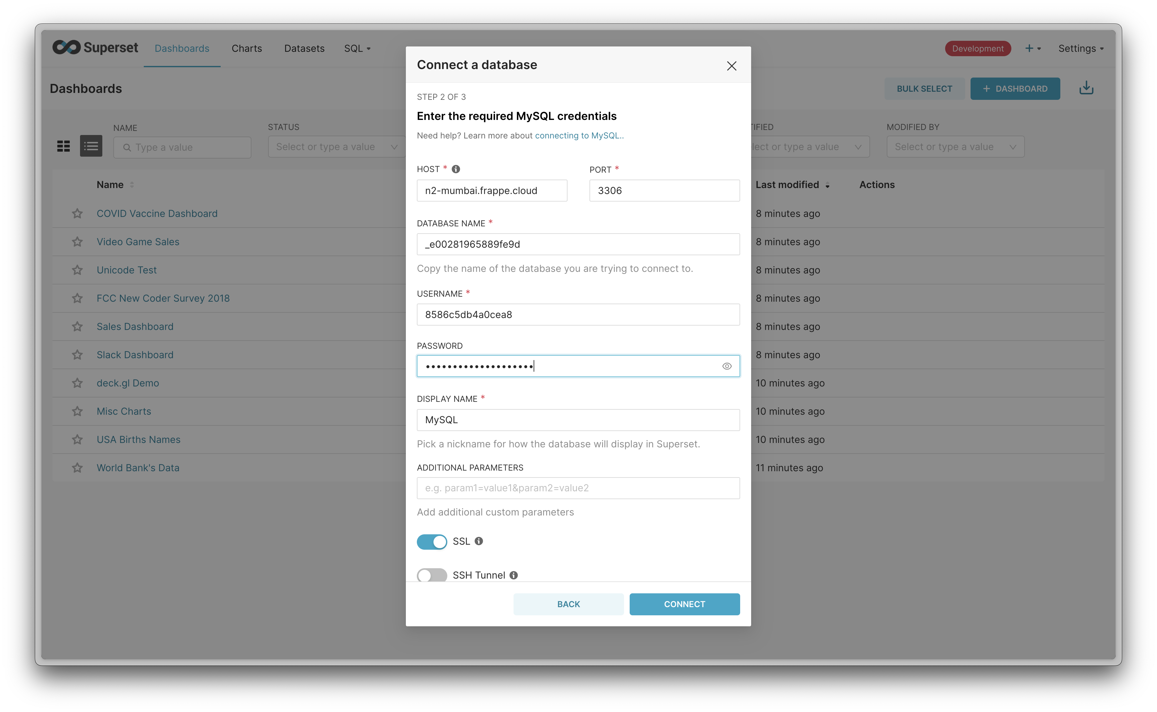 4. Fill in all the required details and ensure the SSL checkbox is checked. Then, proceed.