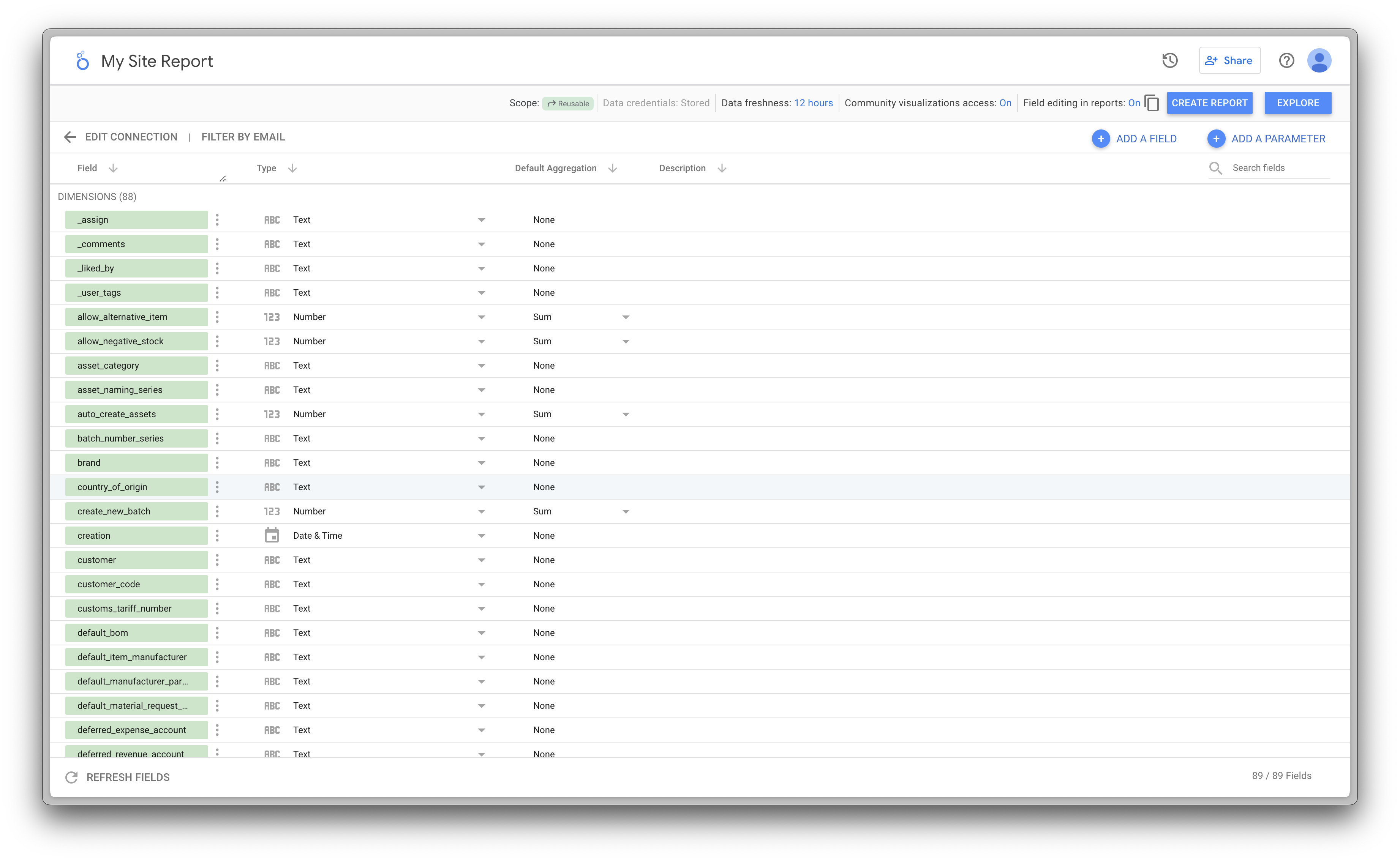 6. After that, you can see the details of the table and create required reports.