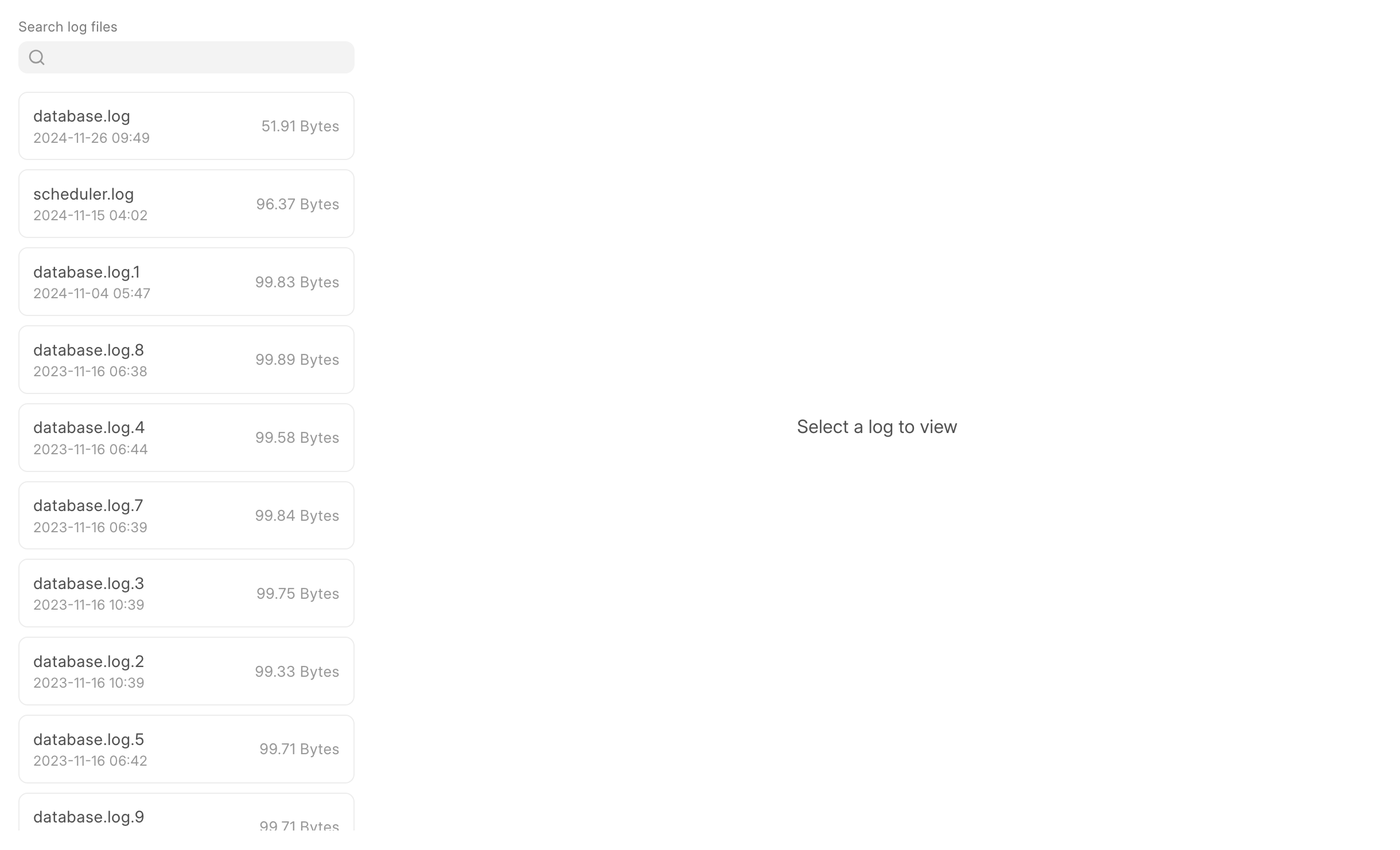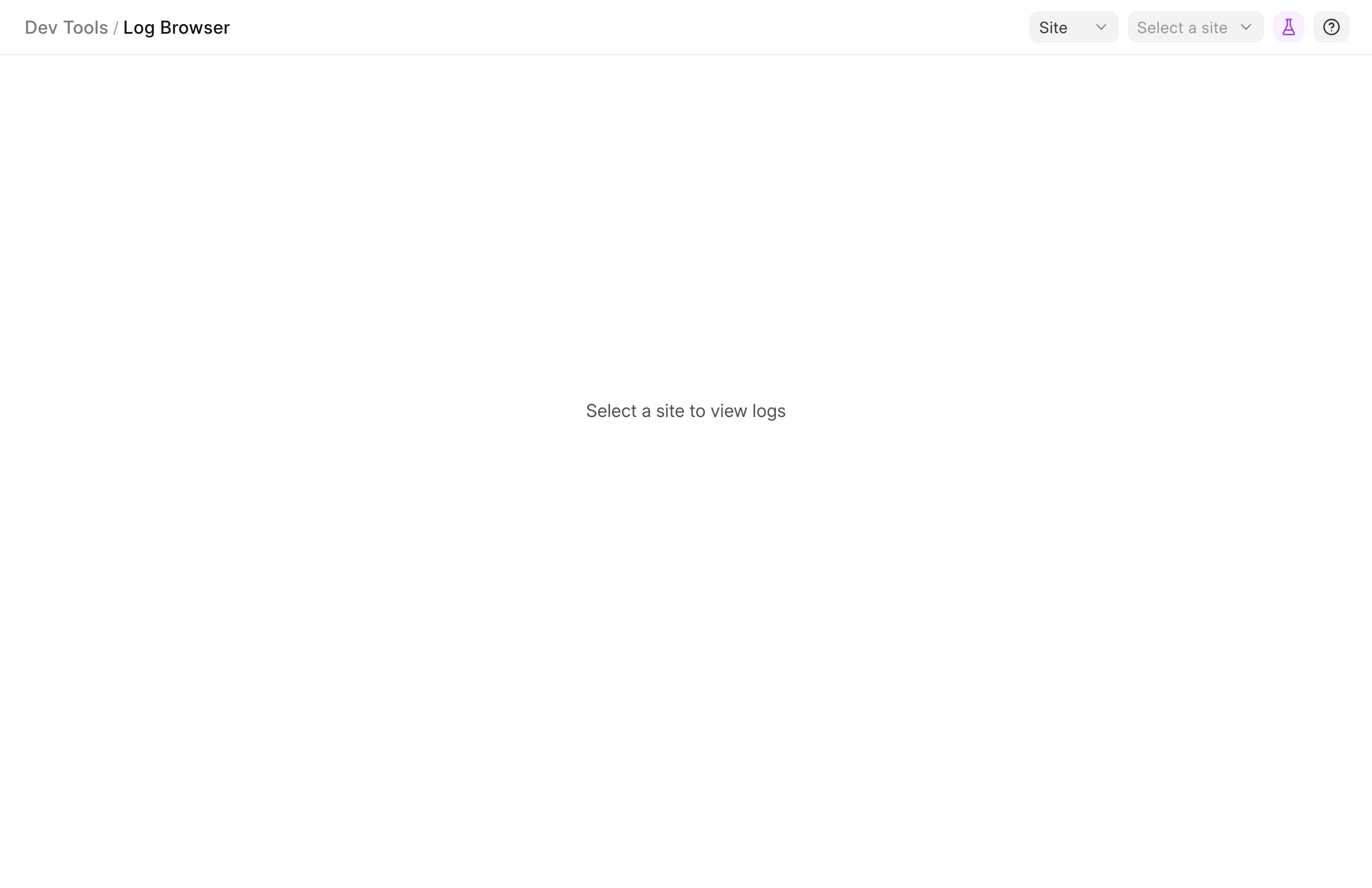 - Select the site/bench you want to view logs from the dropdown in the top right corner