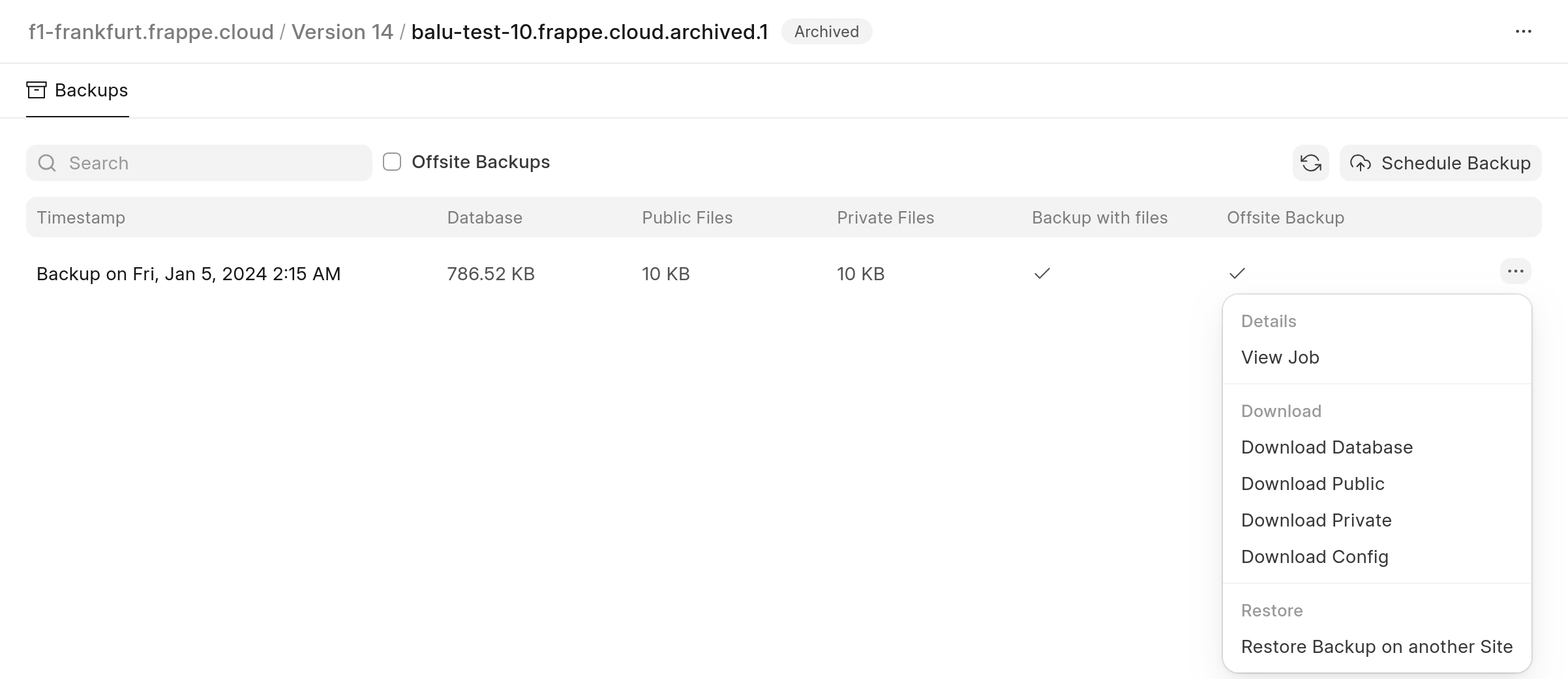 You may notice the apps installed in your sites disappear or change after restoring a backup onto the site. This is because restore is a destructive operation. Restoring a backup will completely overwrite the database with the contents of the backup. This includes the apps, and the same gets reflected in your Frappe Cloud dashboard.