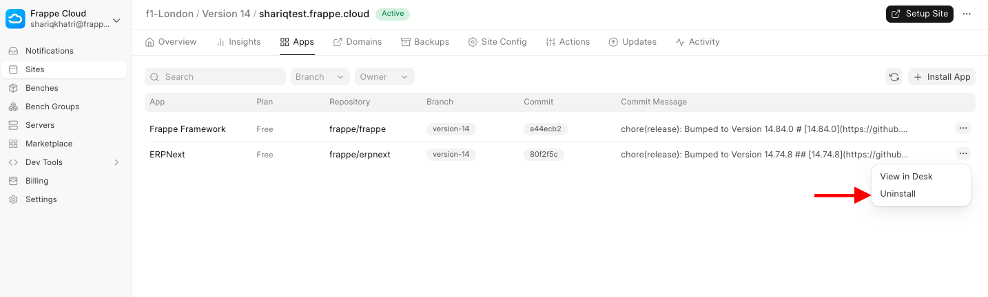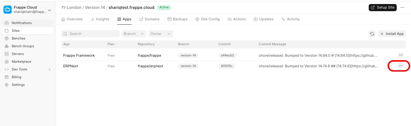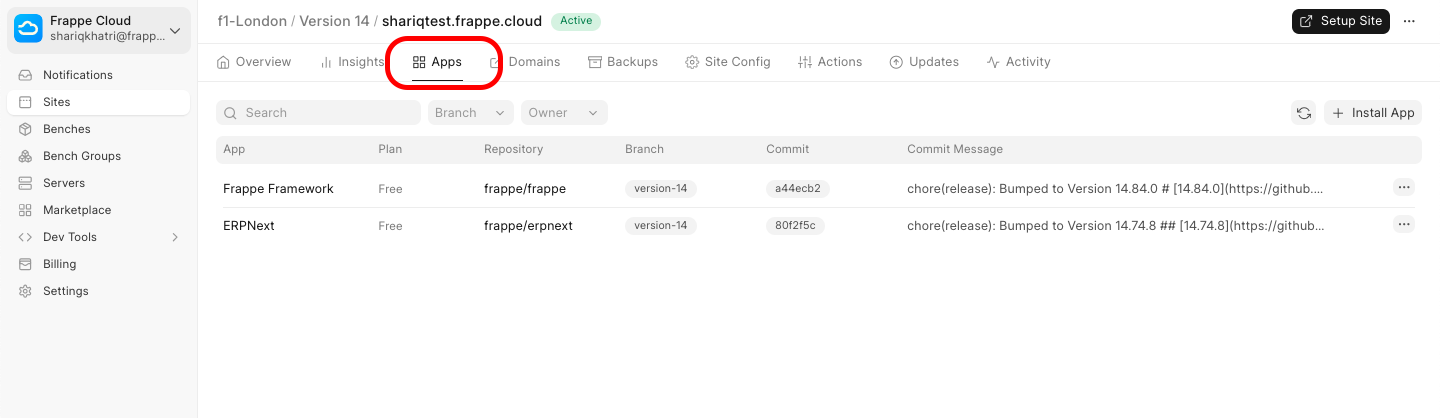 Go to the Apps tab from your Frappe Cloud dashboard.