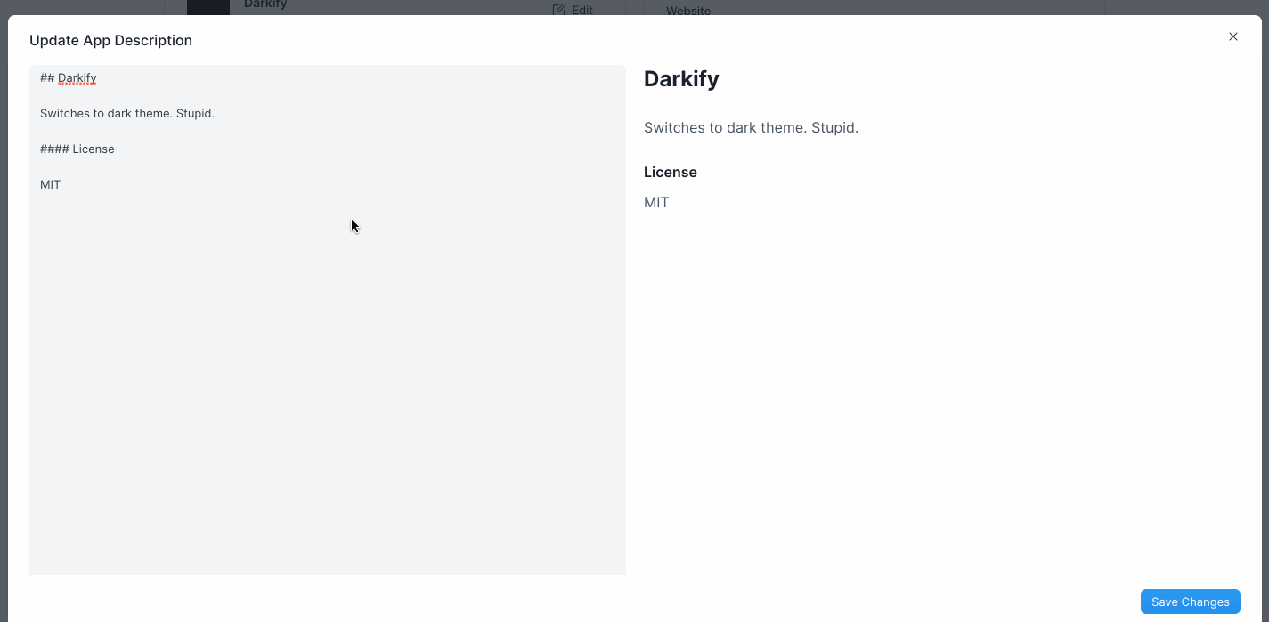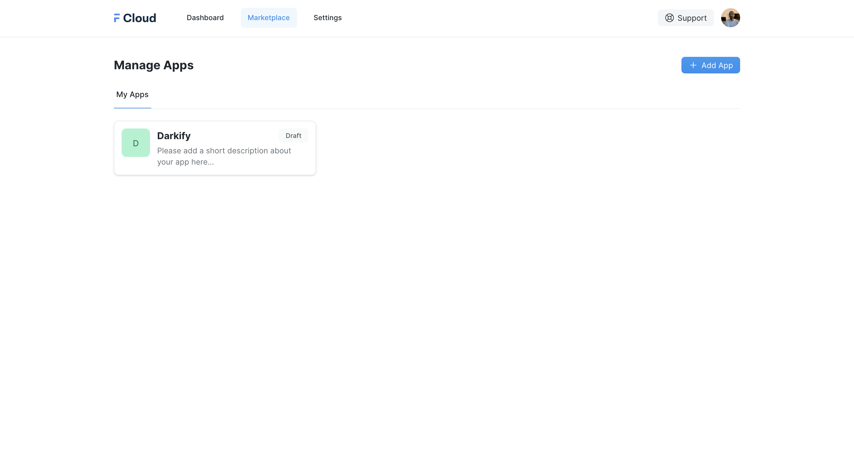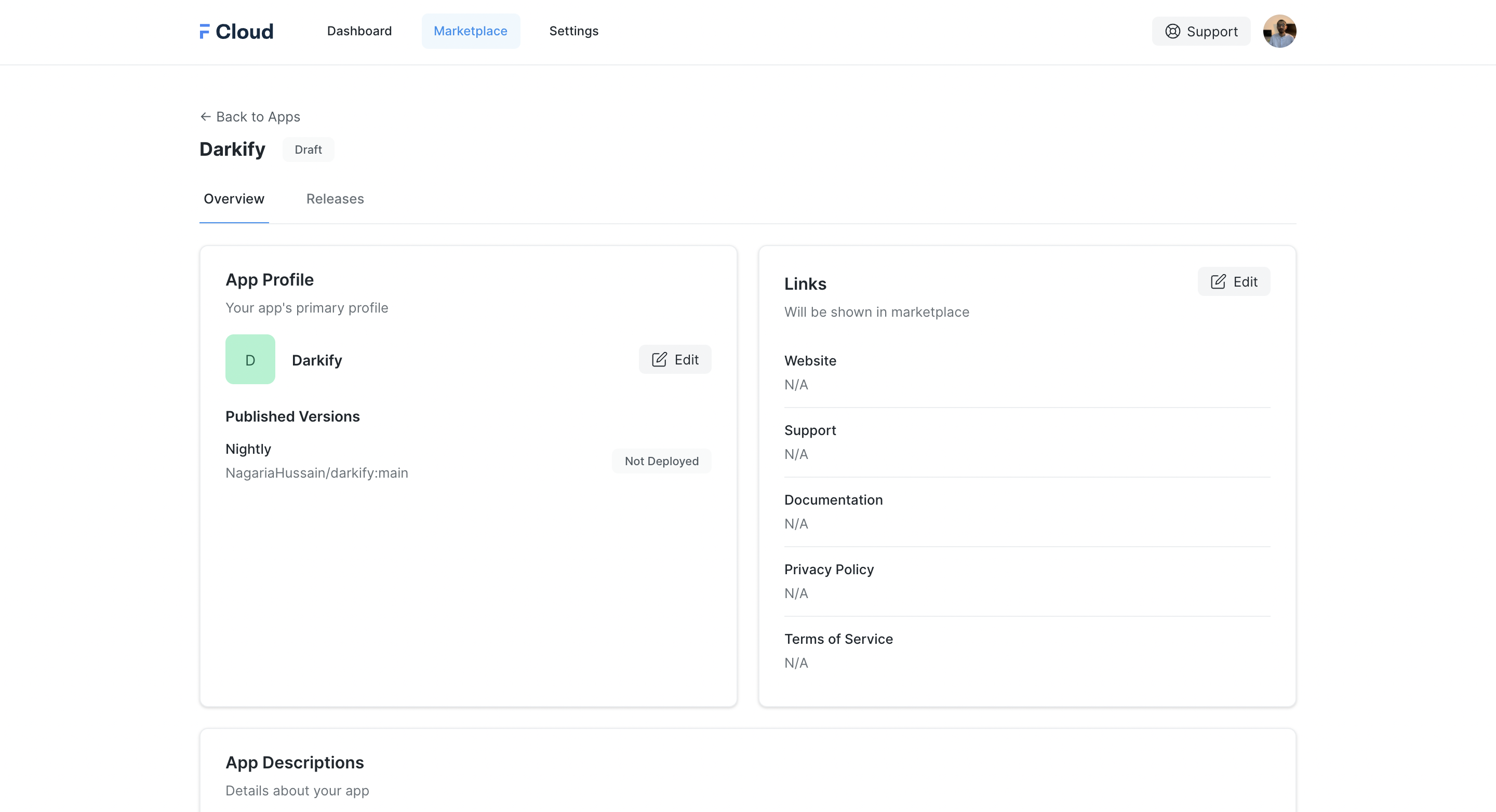 The first tab on the Marketplace App page is the Overview tab. Here, you can edit all the details related to your app like App image, descriptions, links etc. which will be displayed on the marketplace website: