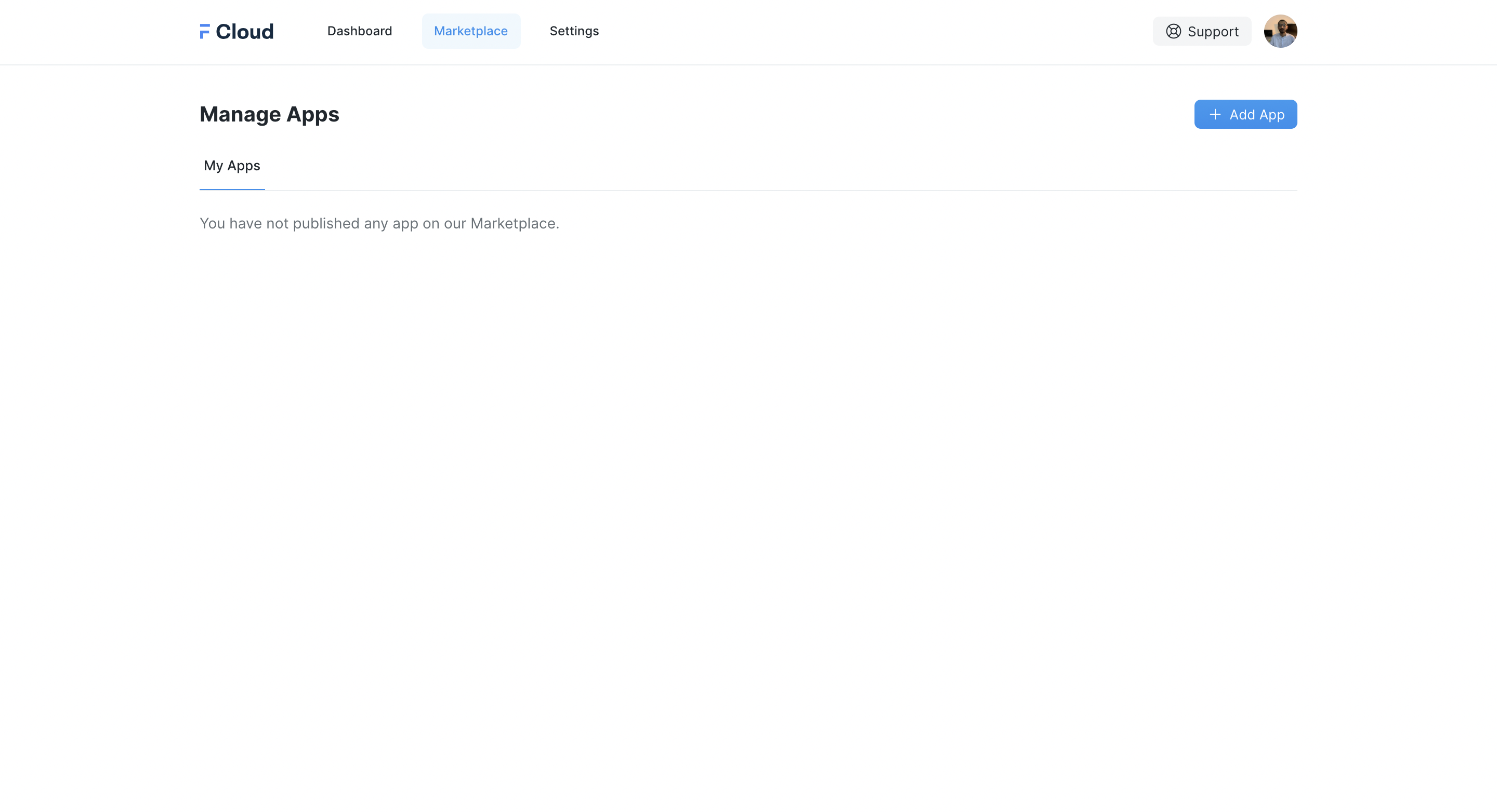 To be able to publish and manage apps on Frappe Cloud Marketplace, you will need to get a marketplace developer account. You can do this by going to the settings page of your Frappe Cloud dashboard. Open the Profile tab and click on the Become a Publisher button: