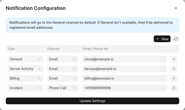 - Check if a specific notification type (e.g., Billing, Incident) is configured.