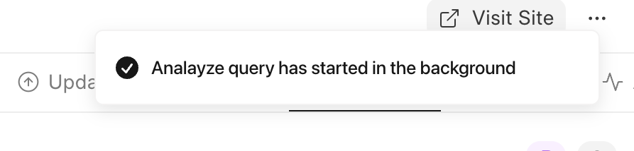 - Click on the Analyze Query button and a toast should appear stating that the Analyze query has started in the background.