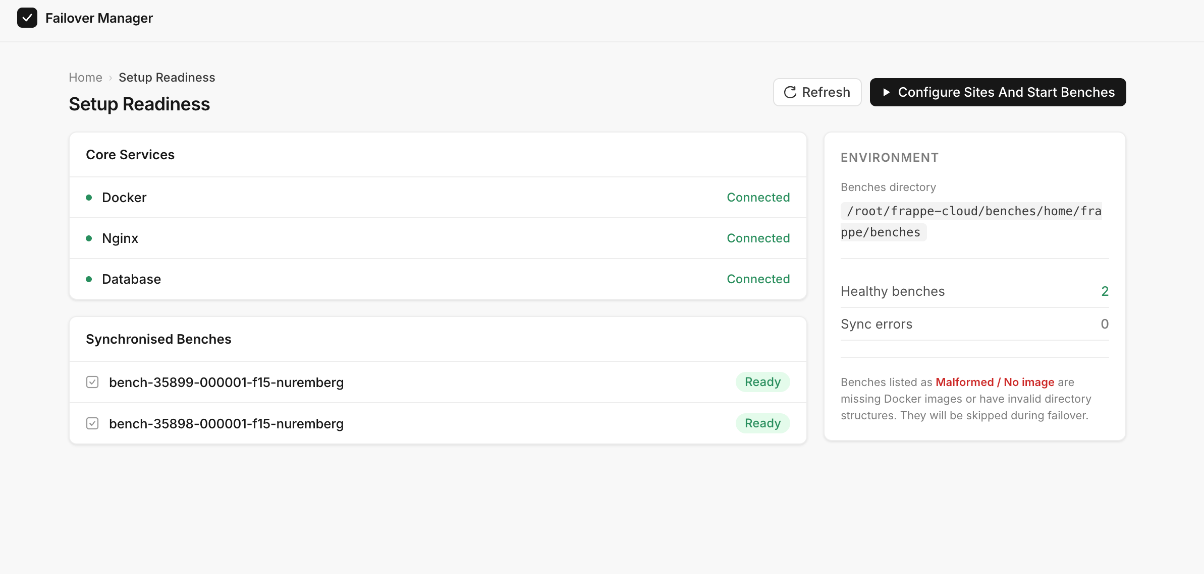 - Click Configure Sites And Start Benches to
