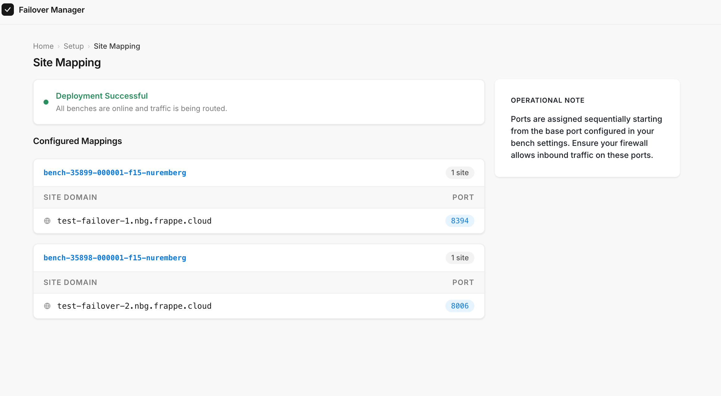 Example: To access test-failover-1.nbg.frappe.cloud, you have to visit http://<your_on_prem_server_ip>:8394
