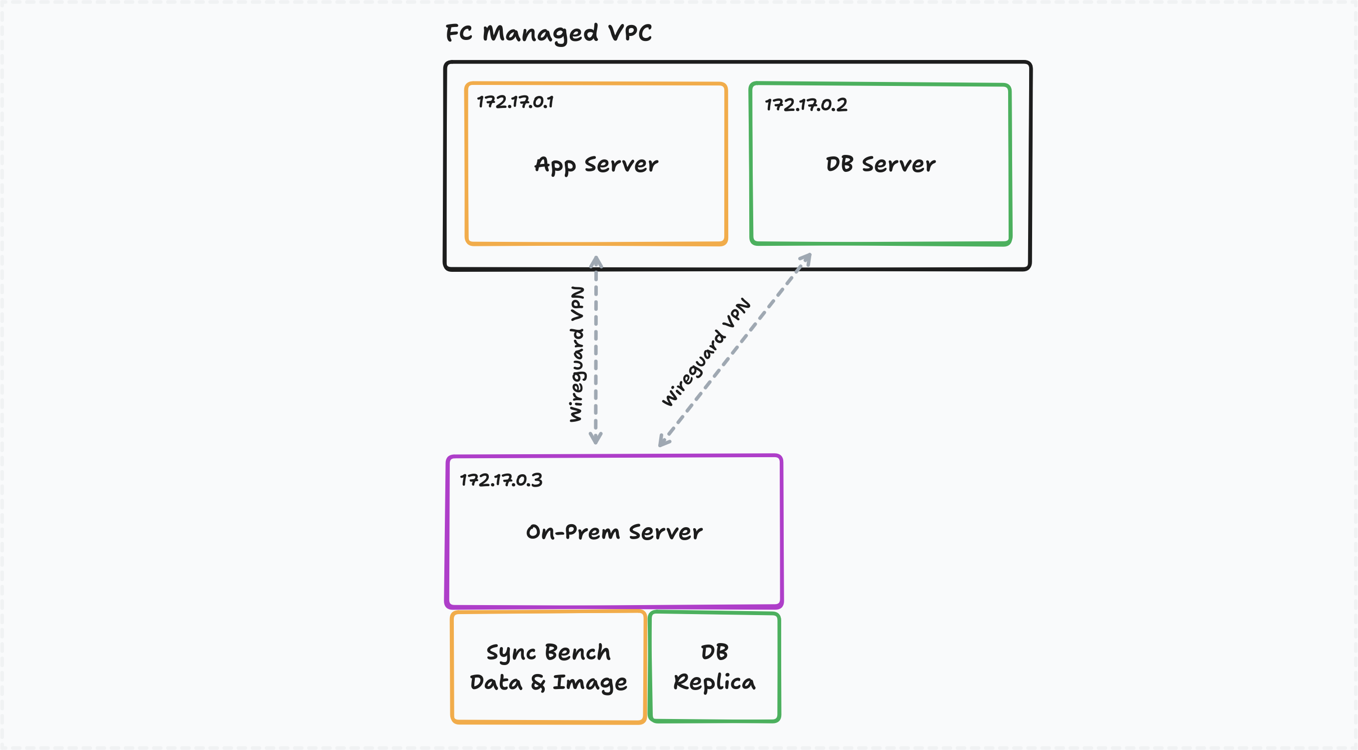 Frappe Cloud sets up a dedicated WireGuard P2P mesh between: