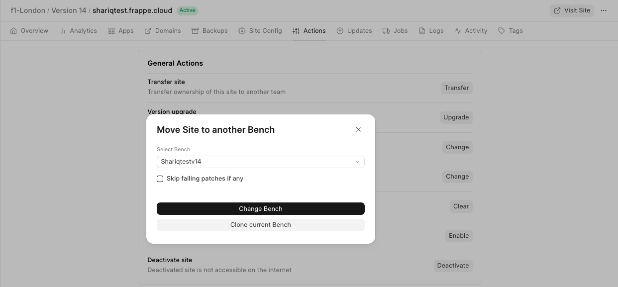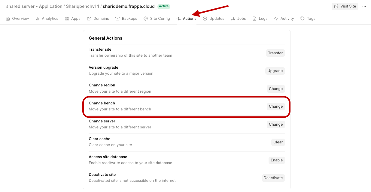 Note: If you need to move to a bench group on another server, you need to move the current bench group to the server first, and after that is done, do Change bench group by following this doc.