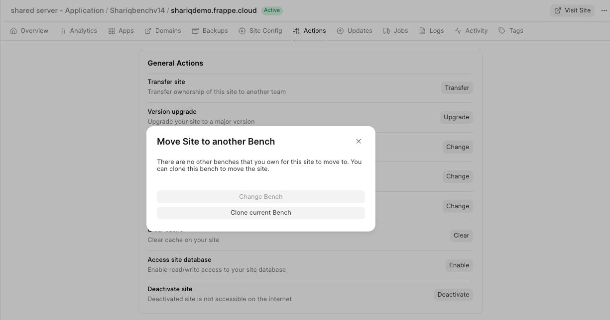 2. If you don't have an available private bench group, click on Clone current Bench Group to create a compatible private bench group for your site to move to.