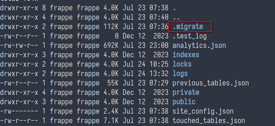 This happens majorly as we take table-wise backup of the site during update. This is done so that in case of any failure during migration (eg: some breaking patch), all the changes done so far to the tables can be quickly rolled back. They're stored in the .migrate folder. This files in this folder should NOT be removed/updated manually as this can cause data loss