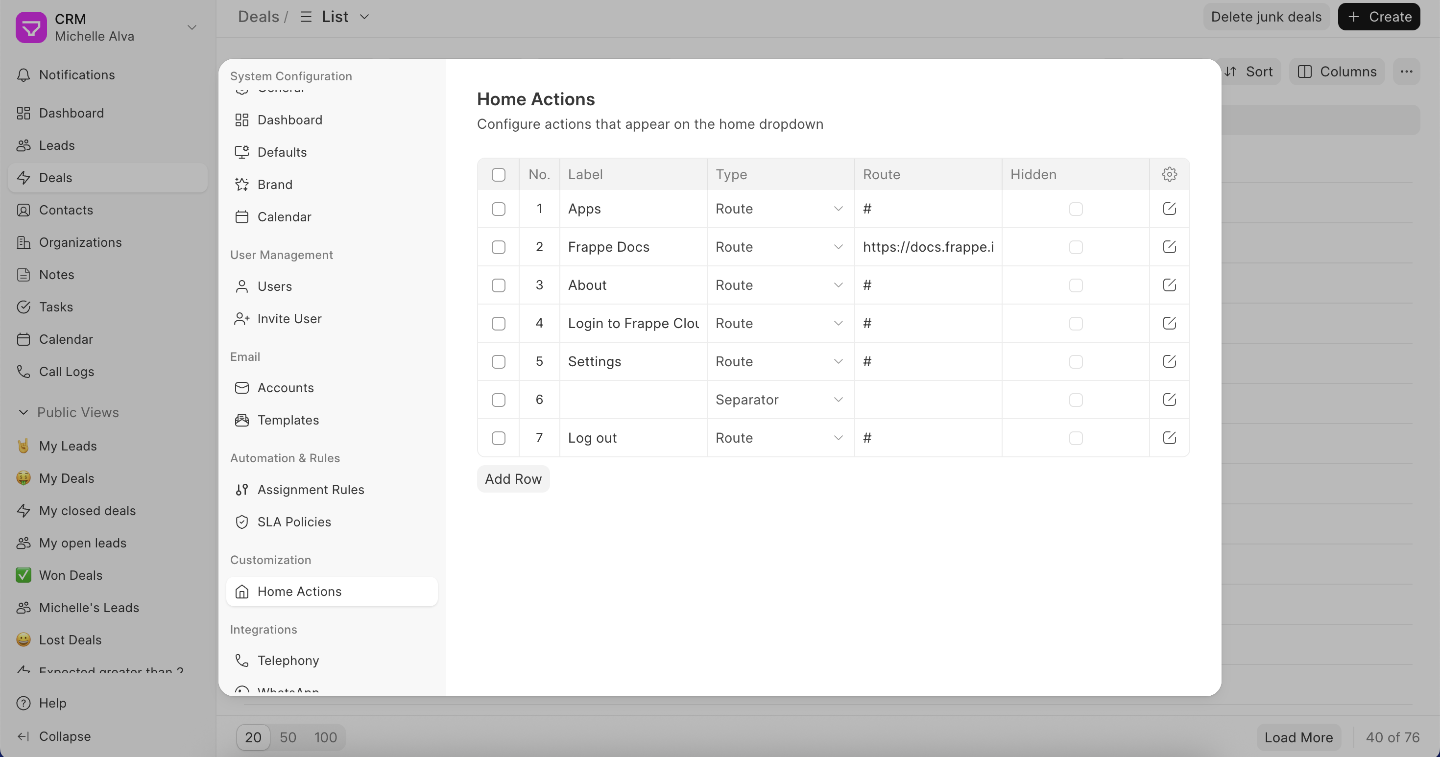 Home Actions lets you customize what shows up there. Add links to tools your team uses every day, hide things they don't need, or add separators to keep things organized.