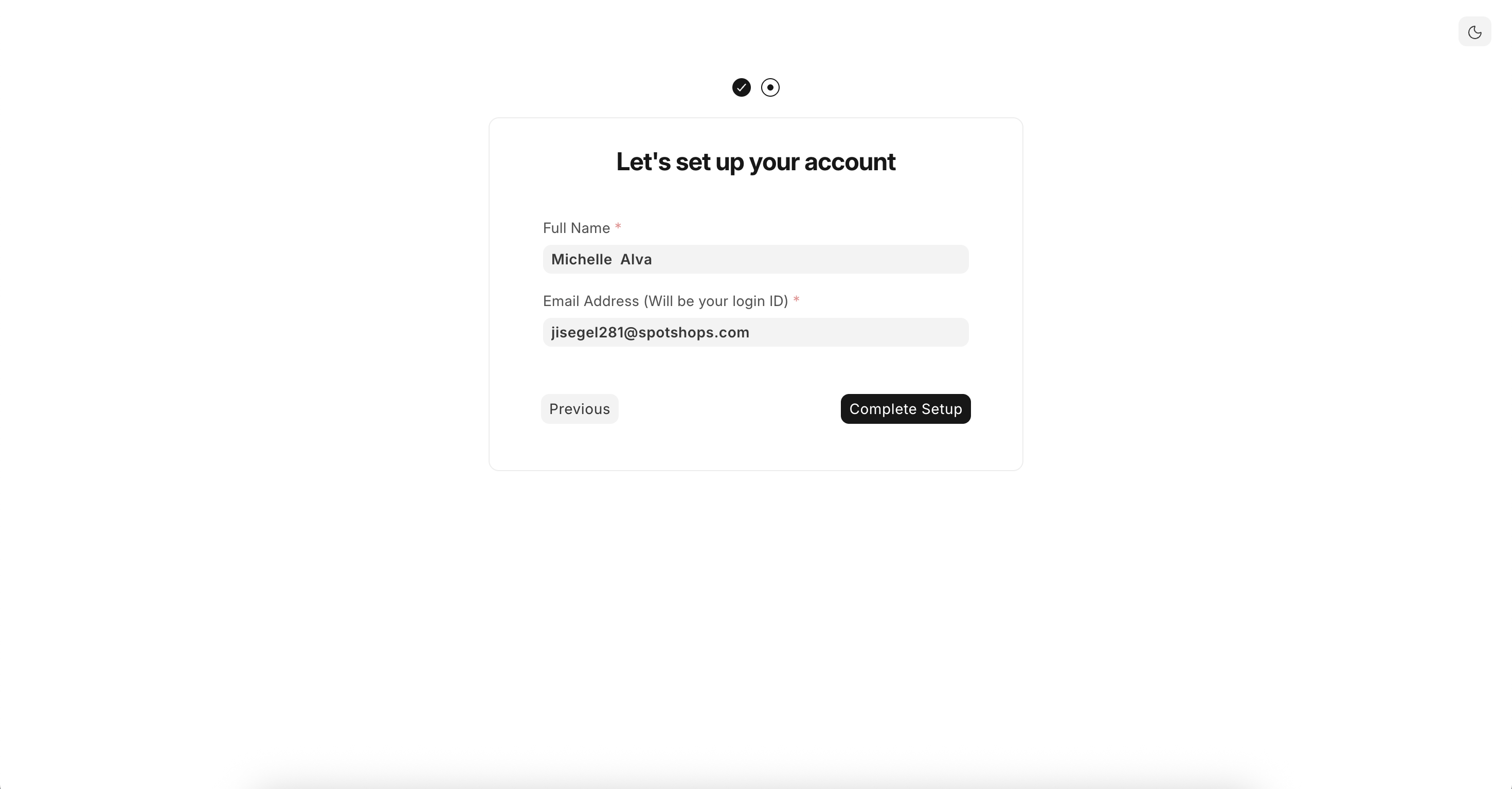 Enter your full name and email address. Your email will be your login ID going forward, so use one you actively check.