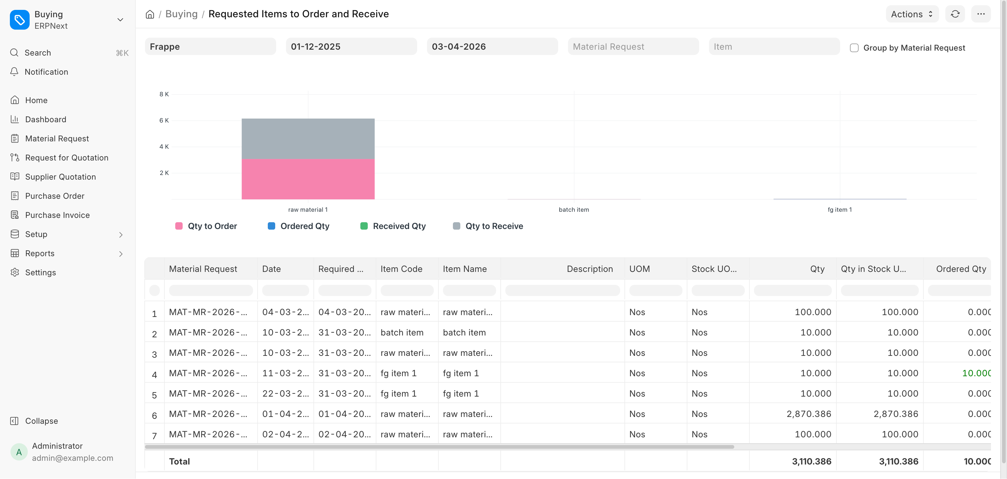Home > Buying > Key Reports > Items to Order and Receive