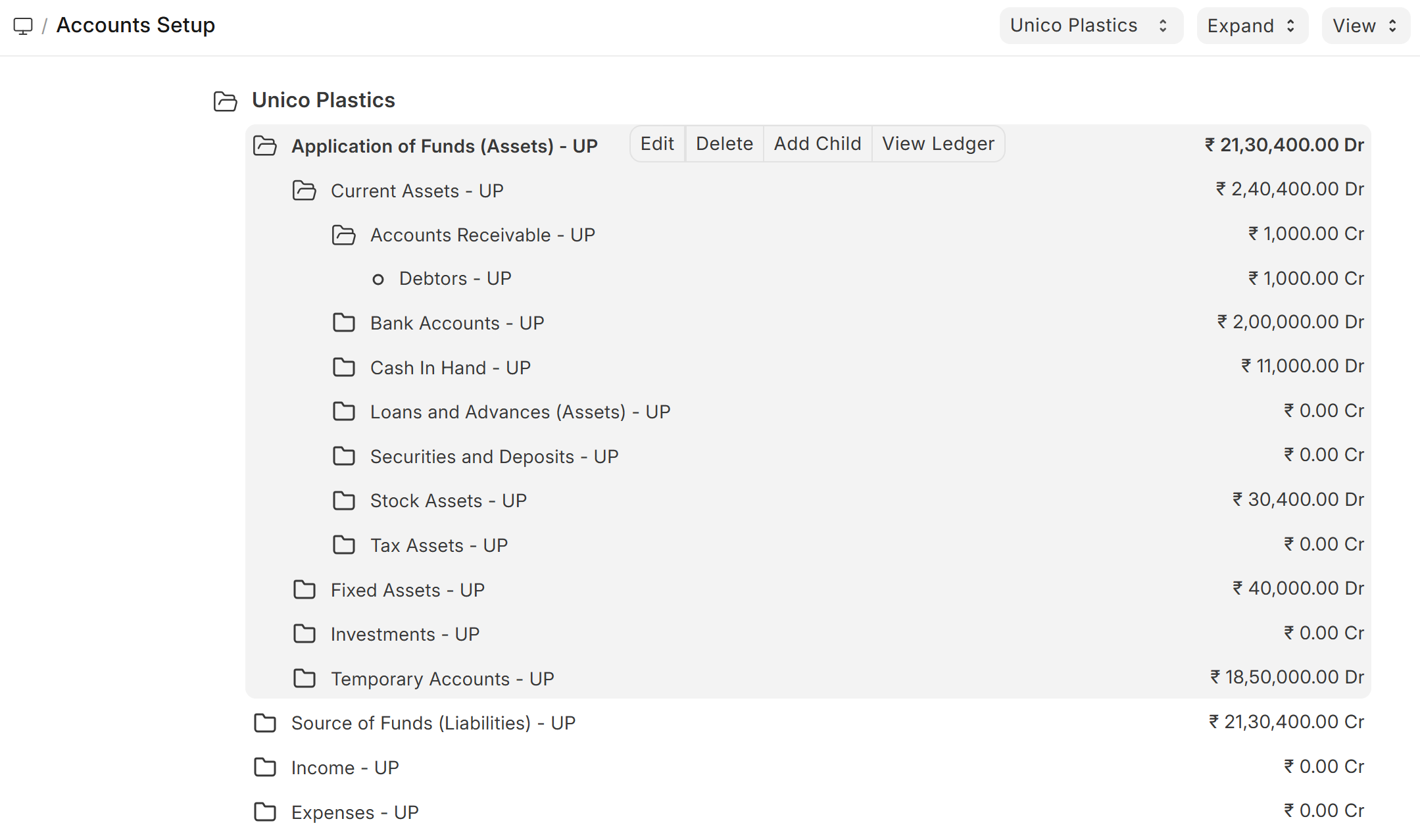 Home > Accounting > Accounting Masters > Chart of Accounts