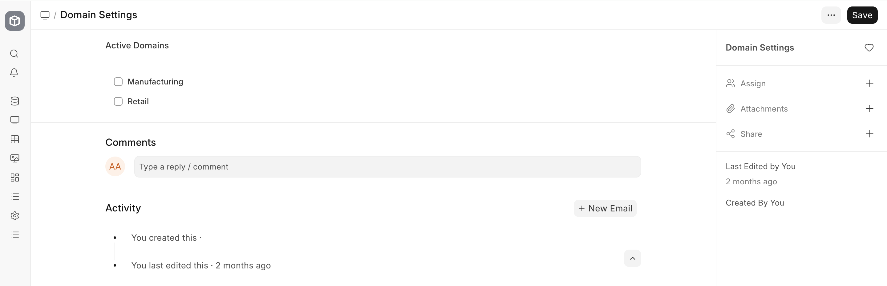 Home > Settings > Core > Domain Settings