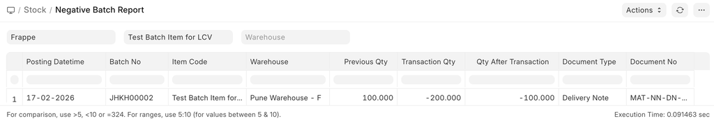 - Identify batches with negative stock quantities