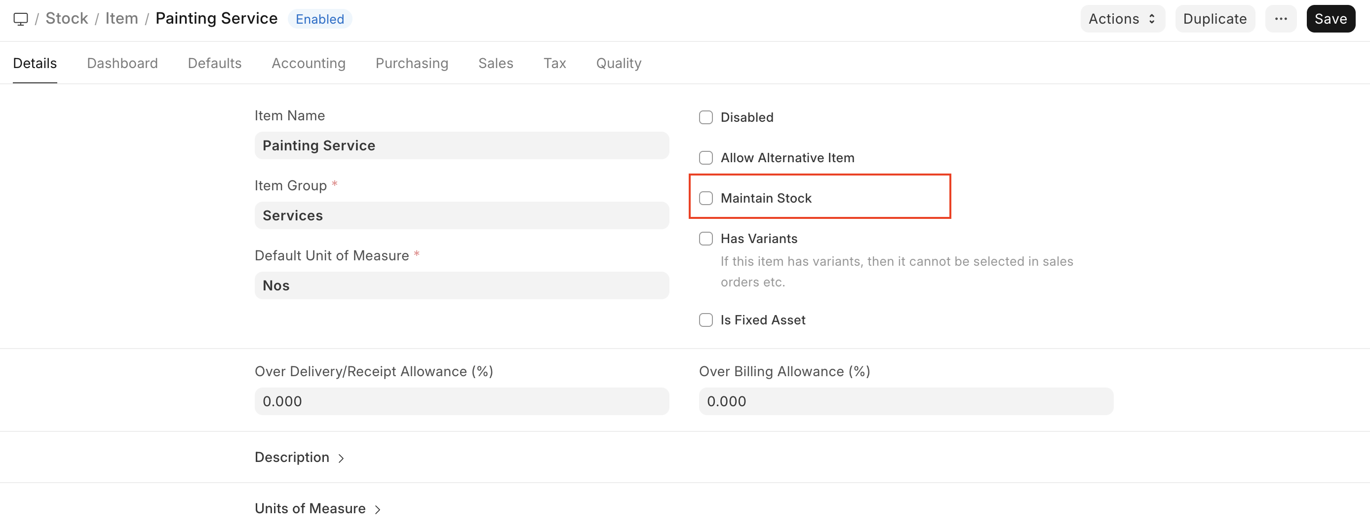 Maintain Stockfield has to be unchecked (checked by default in ERPNext) for this.