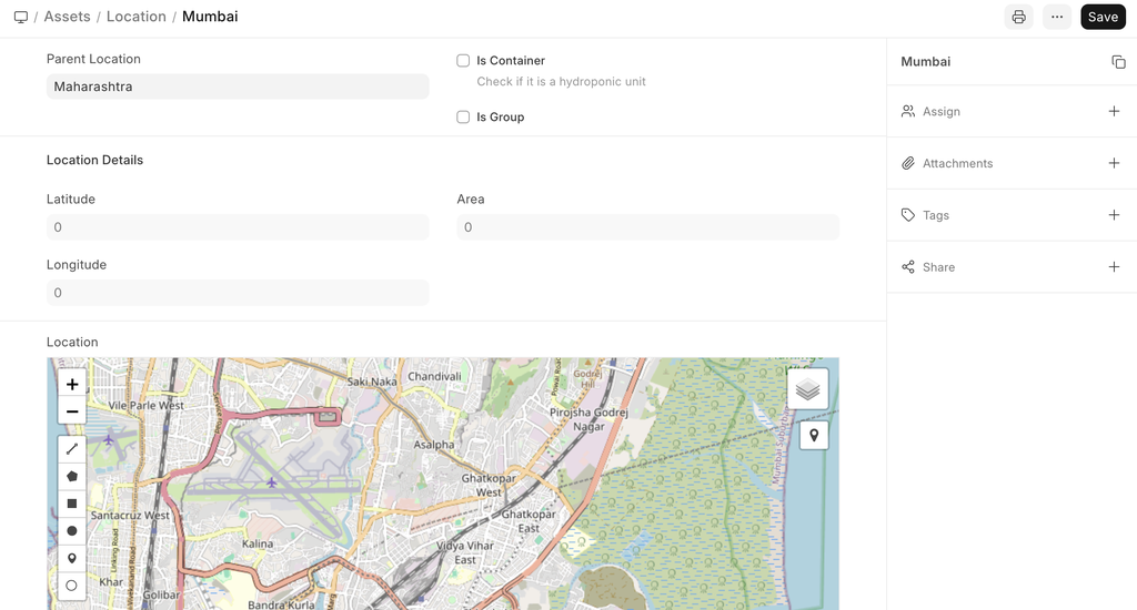 You can also add Latitude and Longitude of the location. When an asset is moved from one location to another, you need to create an Asset Movement record.