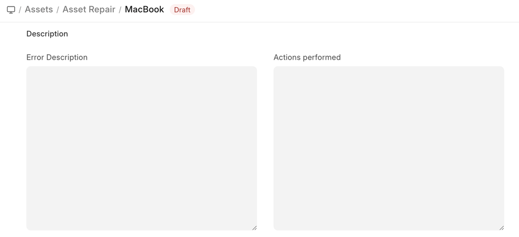 - Actions Performed: A sequence of actions performed to carry out the repair can be noted down here.