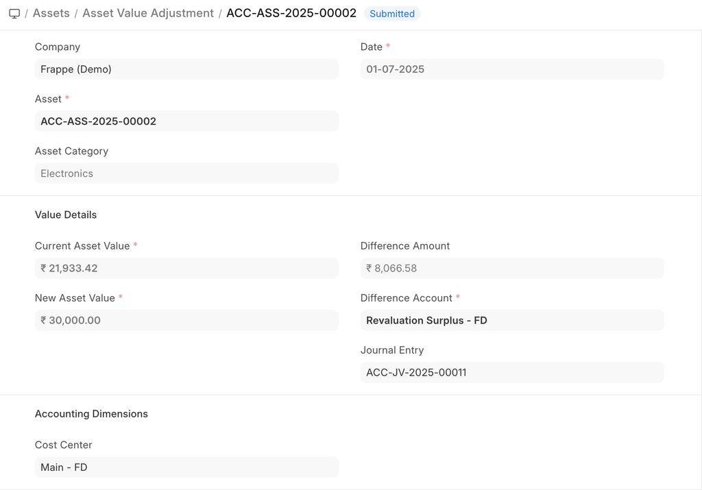 Home > Assets > Maintenance > Asset Value Adjustment