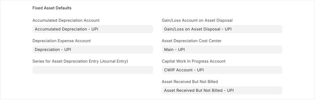 The abbreviation for your company is created by default. For example, FT for Frappe Technologies. The abbreviation helps in differentiating assets of one company from another.