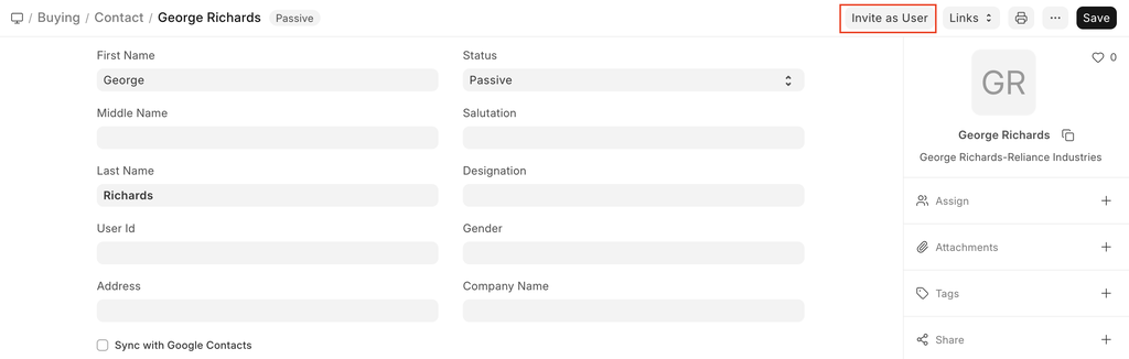 Invite the Contact as a User