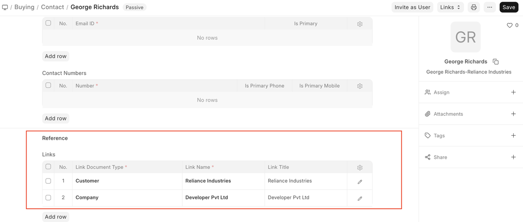 A contact may be linked to multiple customers or multiple suppliers.