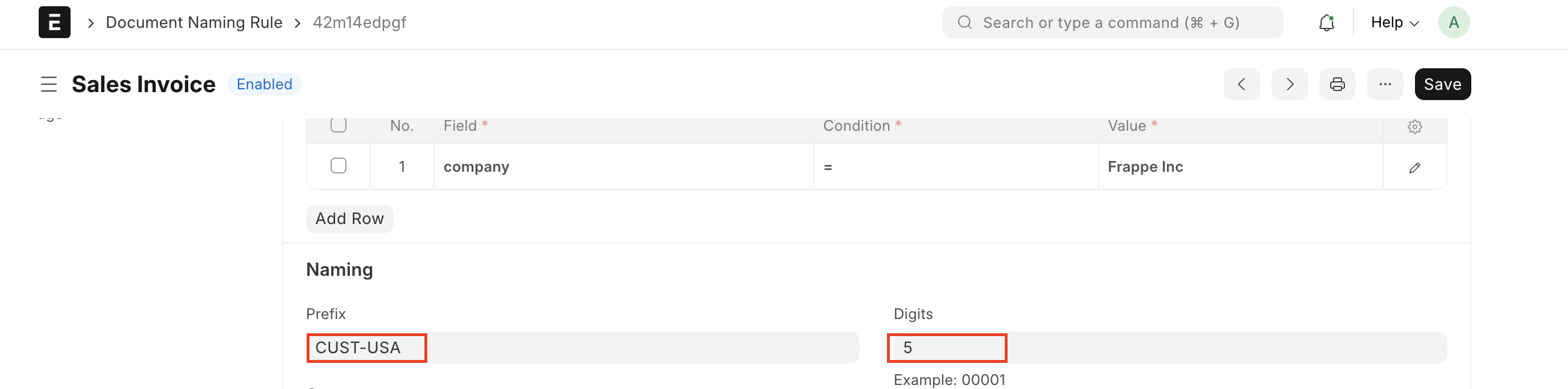 If the customer's Country is India, the naming format should be: CUST-INDIA-00001, CUST-INDIA-00002, ...