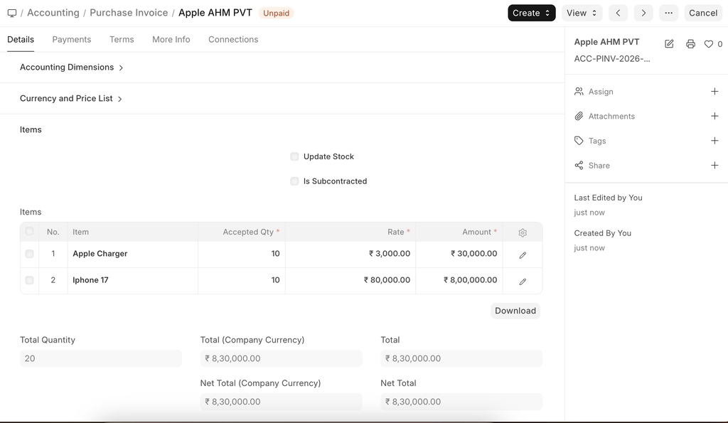 Home > Accounting > Accounts Payable > Purchase Invoice
