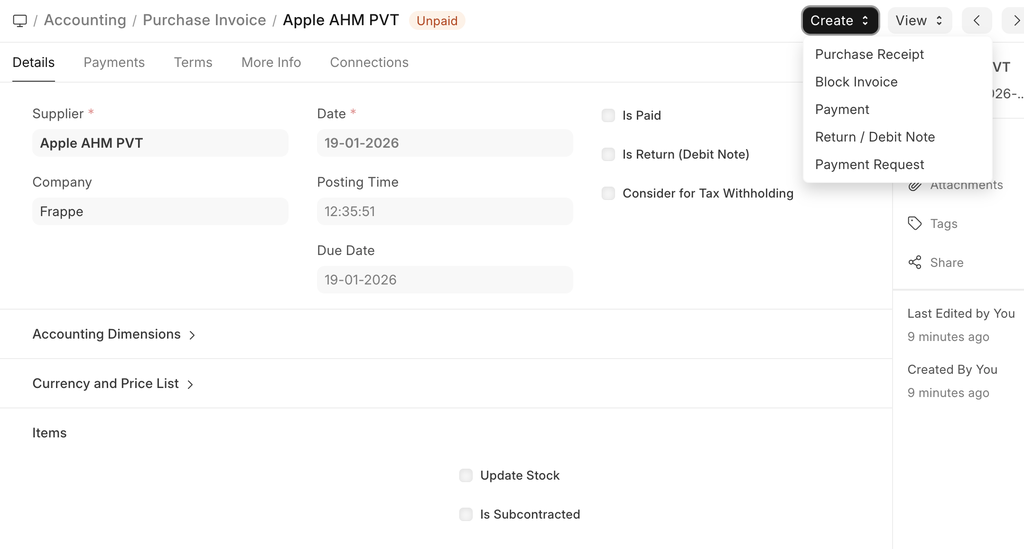 - How to create a Purchase Invoice: