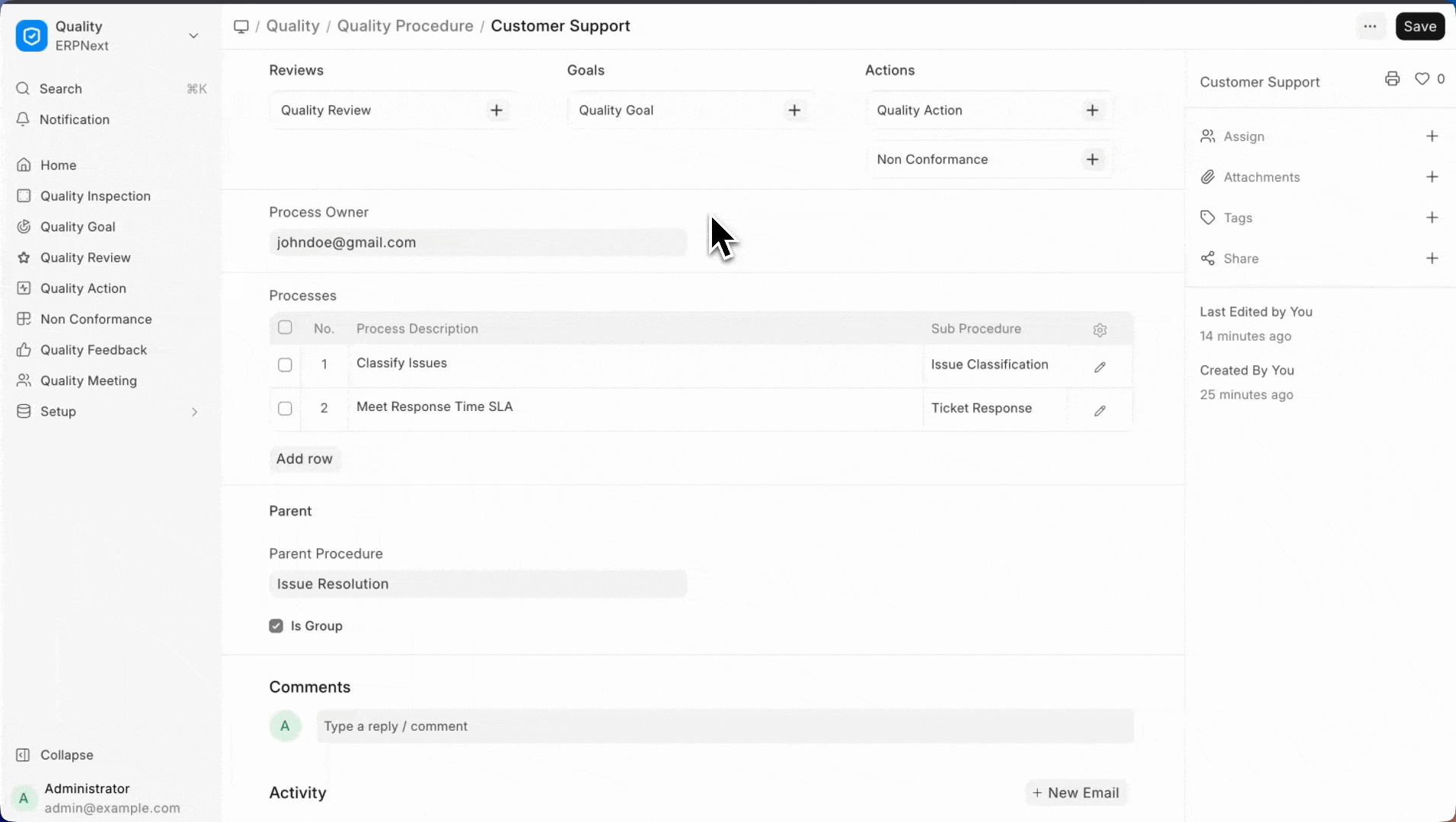 - Save. Quality Procedure can also be saved without entering the Process descriptions if the title is self explanatory.