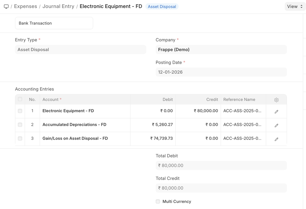 A Journal Entry will be created if you scrap an asset: