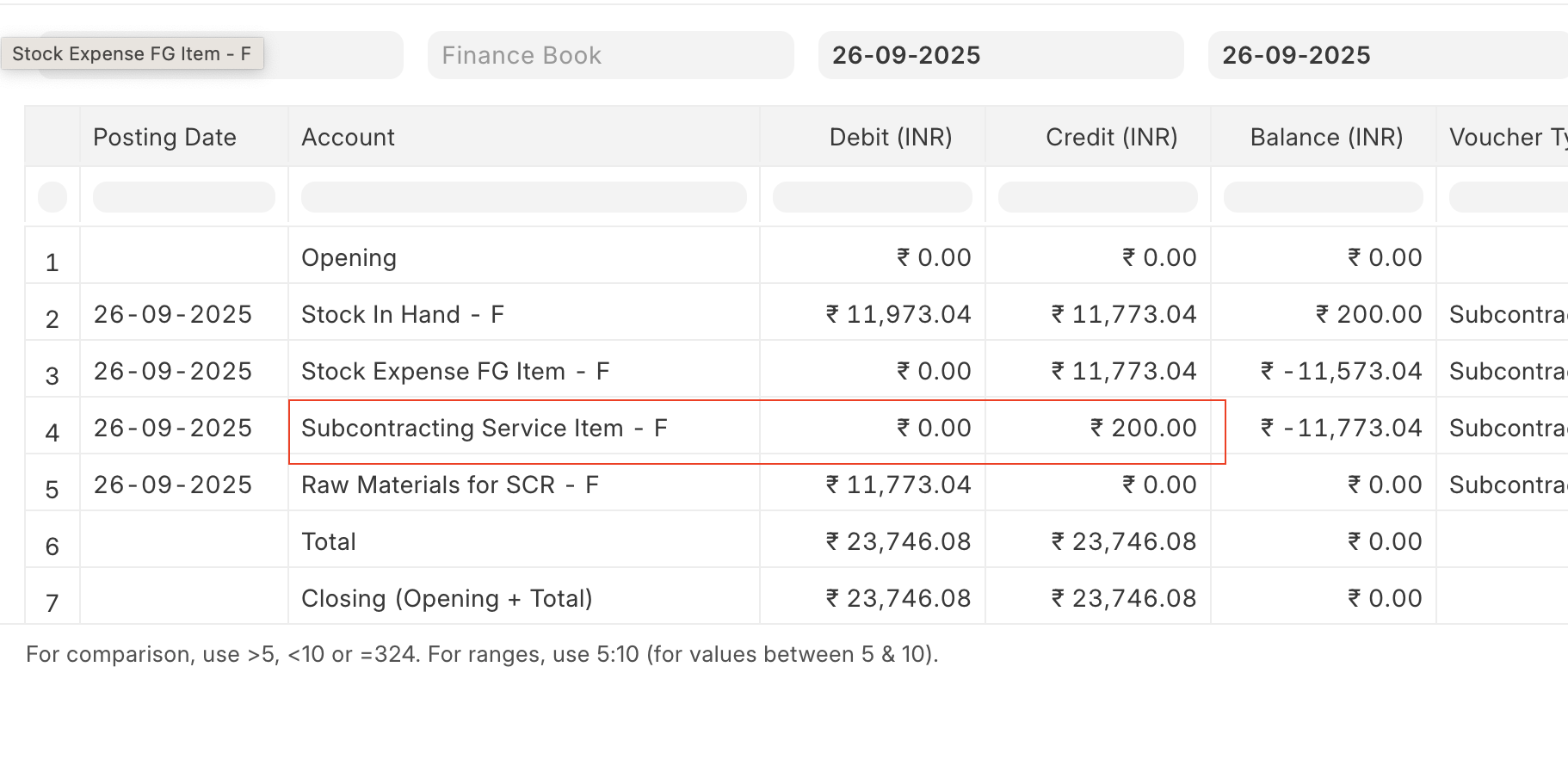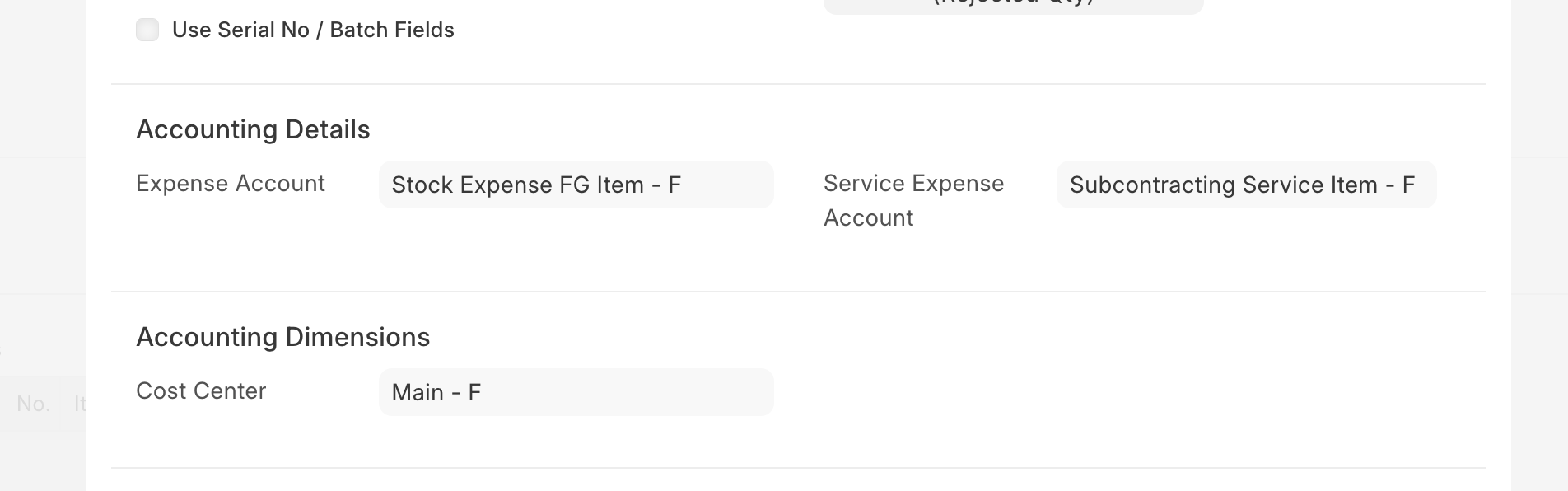If the user sets the expense account in the service item, the same account will be auto-filled in the Service Expense Account field. The user can also manually set the service expense account in the subcontracting receipt. If no service expense account is set, the system will use the Finished Item’s expense account to book the service cost. Once the subcontracting receipt is submitted, the system books the service cost against the service expense account.