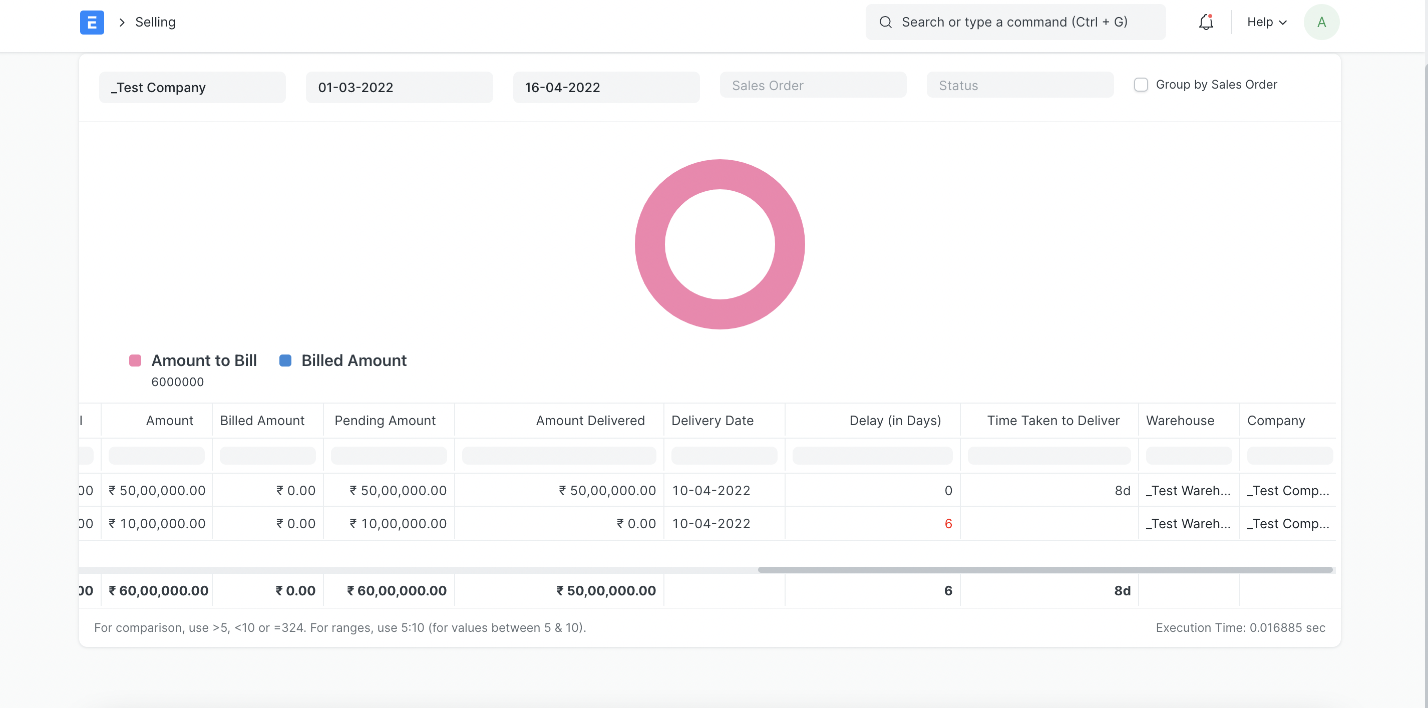 - Time taken to deliver - Total time taken(in days), irrespective of delivery date to completely deliver the Sales Order.