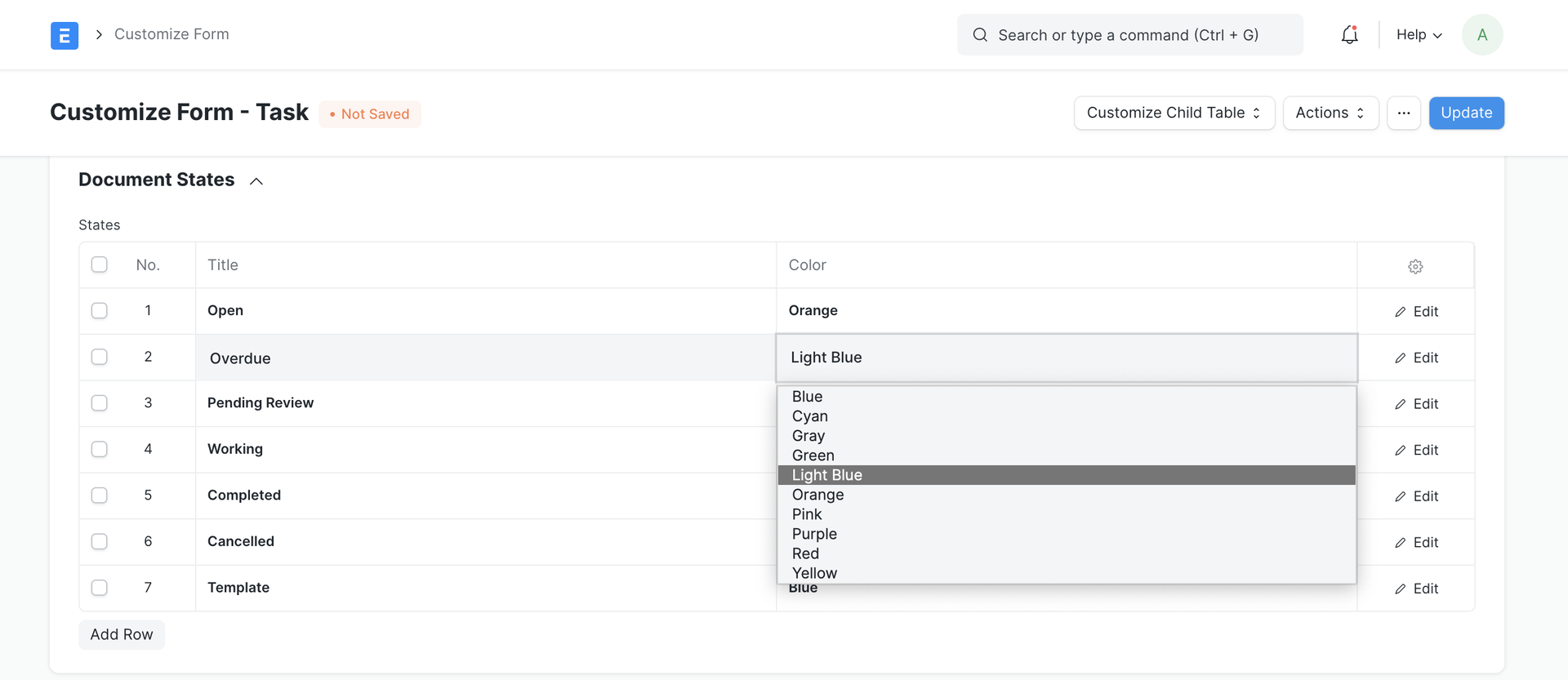 - Scroll down to the Document States section and change the color of "Overdue"
