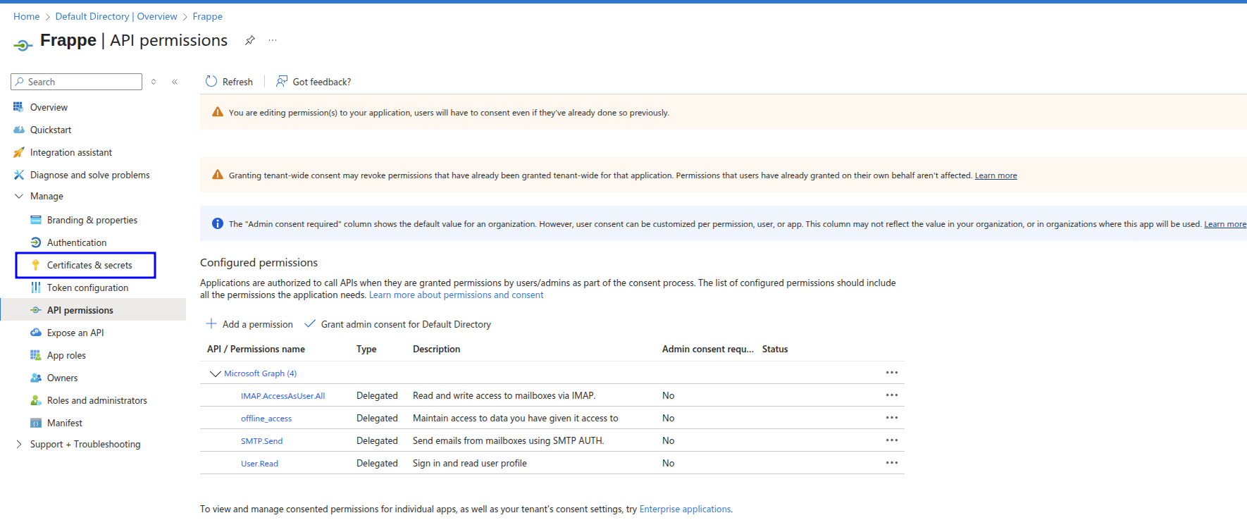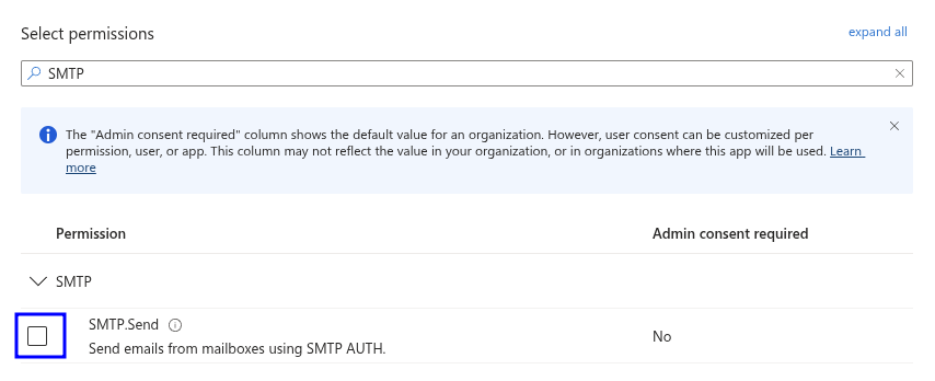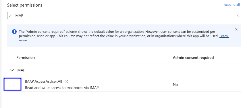 IMAP.AccessAsUserAll,SMTP.Sendandoffline_access, then click "Add permissions"