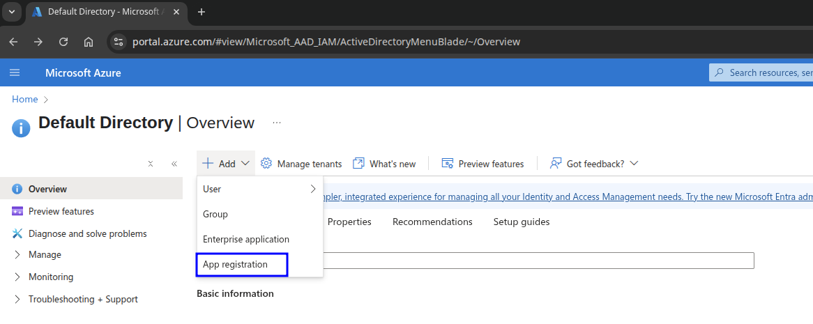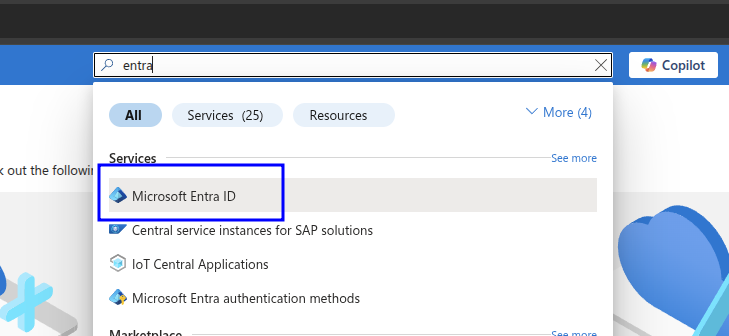 - Login to Microsoft Azure, search for and select Microsoft Entra ID (formerly called Azure Active Directory).