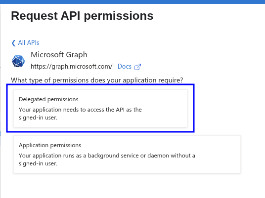 - Head over to API Permission section in your app and add Microsoft Graph permissions.