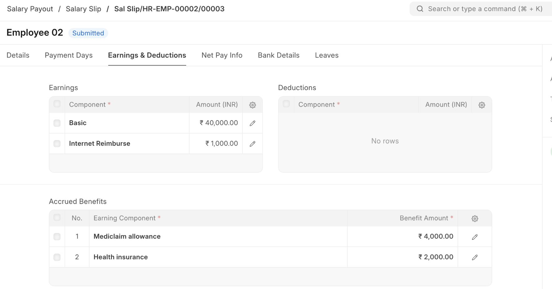 In the Salary Slip: