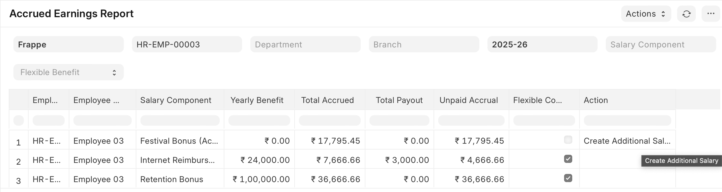 - For standard accruals, users can create an Additional Salary for pending payouts directly.