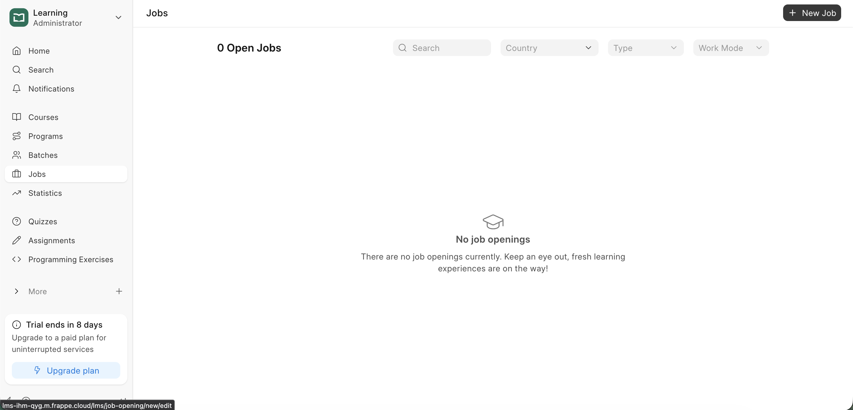 To manage job openings, click on the Jobs section in the sidebar. This will open the Job List, where you can view current postings or create new ones.