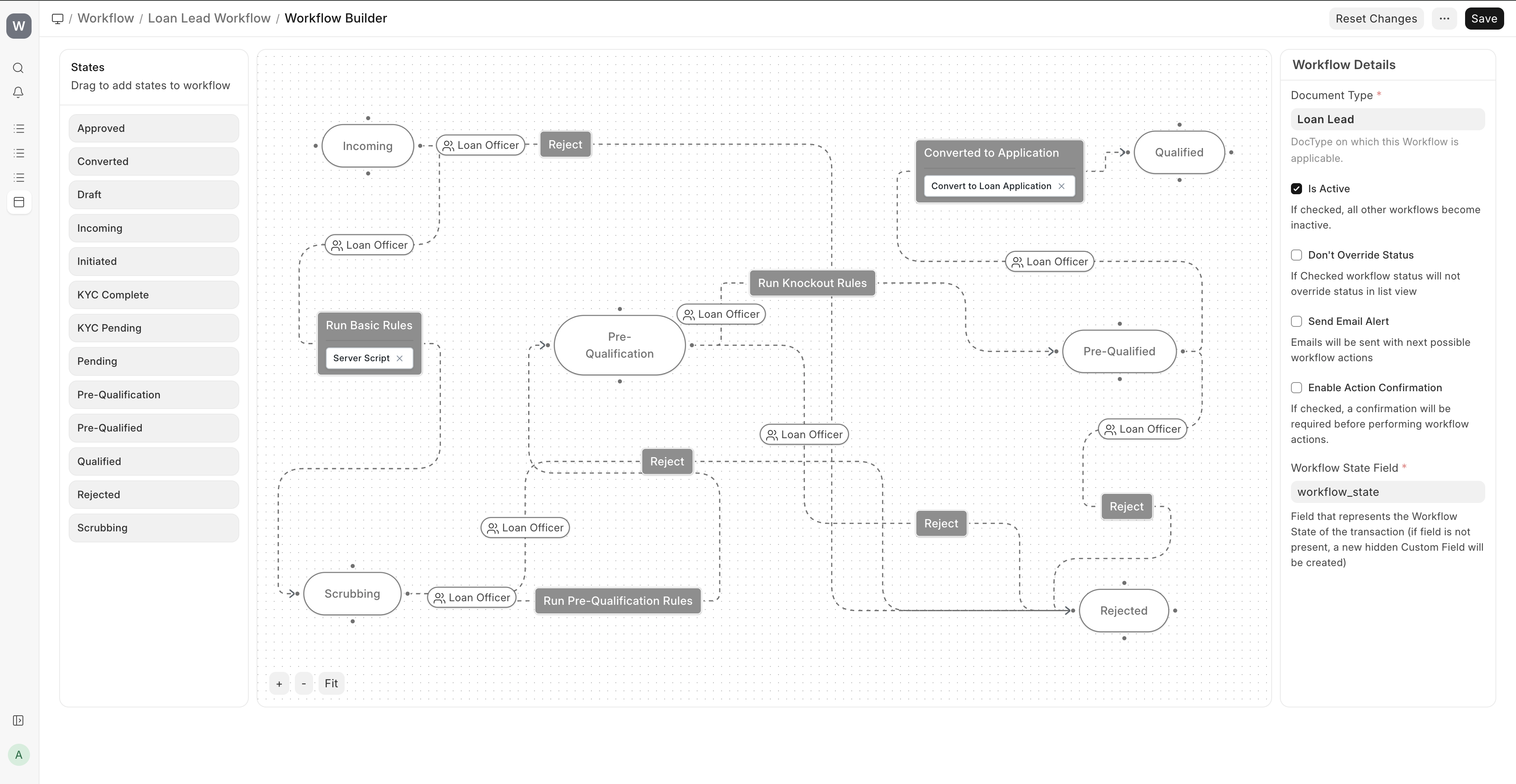 Below is the default workflow on the Loan Lead document.